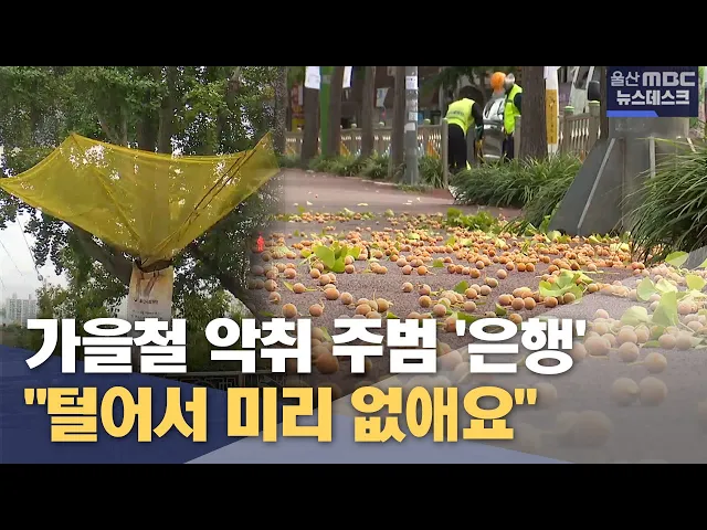 울산시가 가을철 은행나무 열매 악취를 막기 위해 대응반을 편성해 조기에 채취한다고 밝혔습니다. 대응반은 고소 작업차와 진동 수확기를 이용해 주요 지점에서 은행나무 열매를 채취하고 민원이 접수되면 신속하게 수거할 예정입니다. 울산시는 또 자연 낙과하는 은행나무 열매를 수거할 수 있도록 열매 수거 망을 은행나...