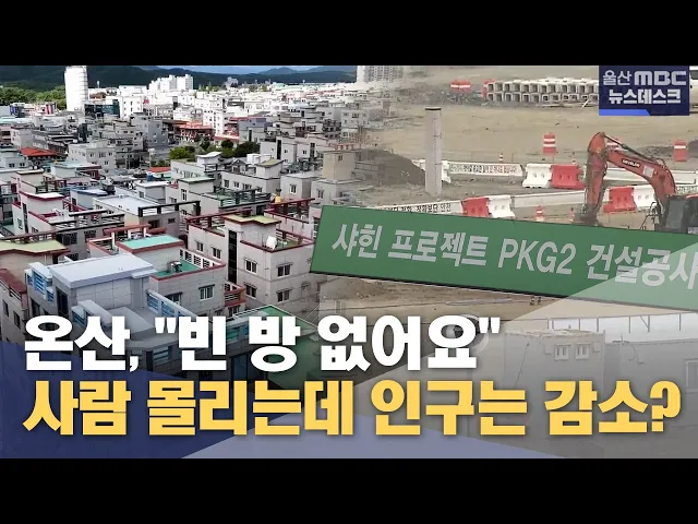 [앵 커 ] 에쓰오일이 추진하는 대규모 공사인 샤힌 프로젝트 때문에 노동자들이 몰리며 울주군 온산읍 지역에는 빈방 찾기가 어려울 정도입니다. 그런데 정작 온산의 인구 숫자는 계속해서 줄어들고 있습니다. 급기야 1996년 읍 승격 당시보다 인구가 적은 2만 명 아래로 떨어졌습니다. 무슨 이유 때문인지, 유영재 기자가 ...