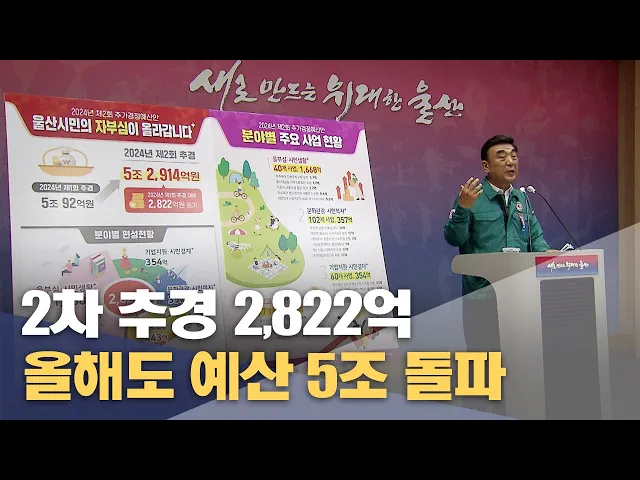 ◀ 앵 커 ▶ 울산시가 2천800억 원 규모의 제2회 추가경정예산안을 편성하며 2년 연속 예산 5조 원을 돌파했습니다. 특히 이번 추경 예산은 교통과 안전 등 시민들이 일상생활에 만족감을 느낄 수 있는 정책들에 집중했습니다. 정인곤 기자 ◀ 리포트 ▶ 울산시가 올해 제2회 추가 경정 예산안 2천822억 원을 편성했습니다. 이...