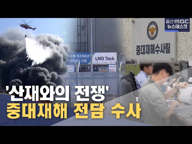 [앵커]올해 울산지역의 중대재해 사망자 수가 벌써 지난해 전체 사망자 수만큼 발생했습니다. 정부가 연일 산재 사고 방지 대책을 주문하는 가운데, 검찰에 이어 경찰도 중대재해 전담 수사팀을 신설하고 강력 대응에 나섰습니다. 정인곤 기자 [리포트]대형 유류 저장탱크에서 솟아오른 거대한 화염이 다른 유류탱크를 집어...