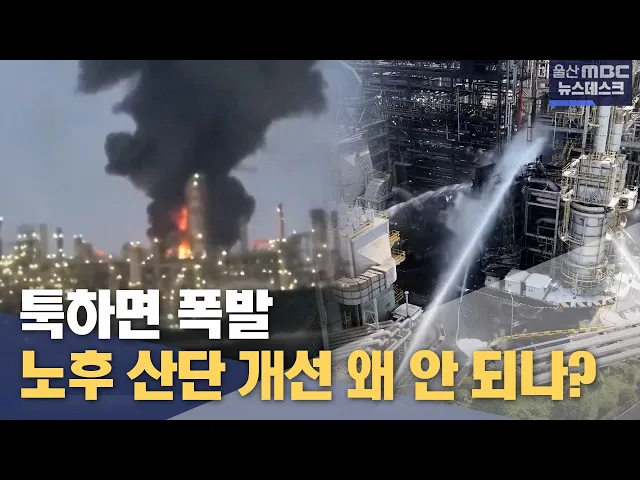 [앵커]어제(7/28) 에쓰오일 공장에서 발생한 대형 화재로 많은 시민들이 가슴을 졸여야 했습니다.울산지역 산업단지는 전국에서 가장 사고가 많이 발생하고 있는데, 시설 노후화가 가장 큰 원인으로 지적되고 있지만 기업에 시설 개선을 강제할 방법이 없다고 합니다. 정인곤 기자 [리포트]전쟁이라도 난 듯 시뻘건 화염이 ...