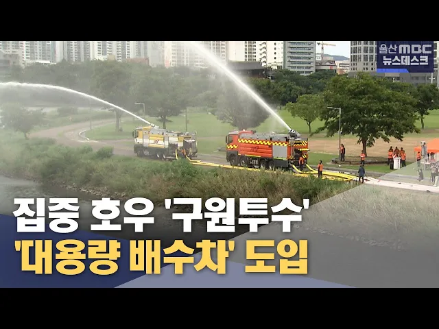 ◀ 앵 커 ▶ 극한호우로 인한 침수피해에 대비하기 위해 울산시가 대용량 배수차를 새롭게 도입했습니다. 시간당 150mm의 강한 비까지 대응이 가능해 앞으로 침수 예방 지역에 투입돼 운용한다는 계획입니다. 정인곤 기자 ◀ 리포트 ▶ 태화강으로 거대한 물줄기가 끊임없이 뿜어져 나옵니다. 대용량 펌프로 순식간에 빨려 들어...