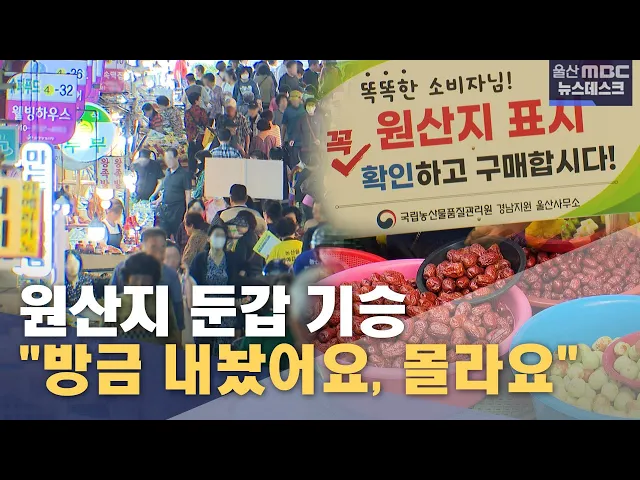 [앵커]긴 추석 연휴는 어느 때보다 먹을거리들이 많이 팔리는 대목이죠. 그런데 이렇게 수요가 늘 때마다 부정 유통도 함께 늘어나 주의가 필요합니다. 현장을 가봤더니 중국산을 국산으로 둔갑시키기도 하고, 판매자도 원산지가 어디인지 모른 채 물건을 팔고 있었습니다. 단속 현장을 이다은 기자가 동행했습니다. [리포...