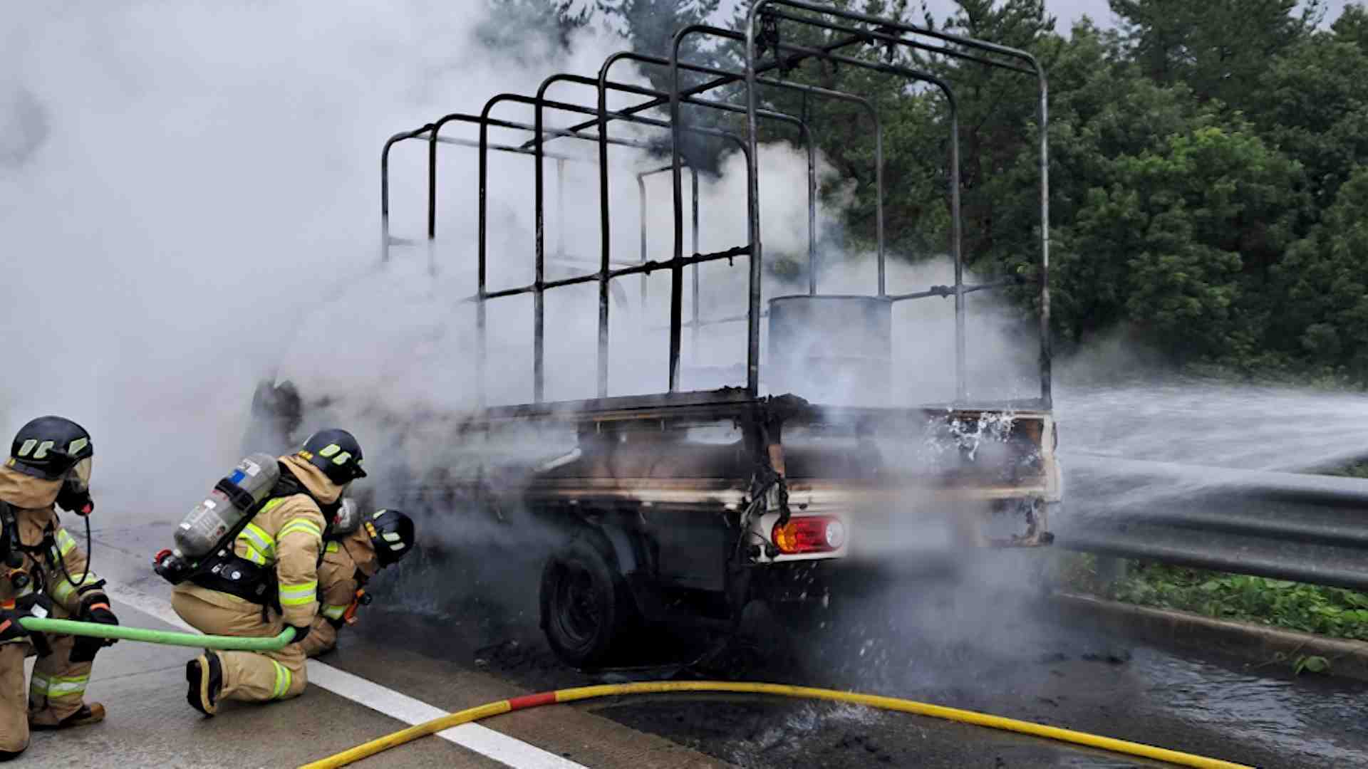 동해고속도로 달리던 화물차 화재로 차량 전소