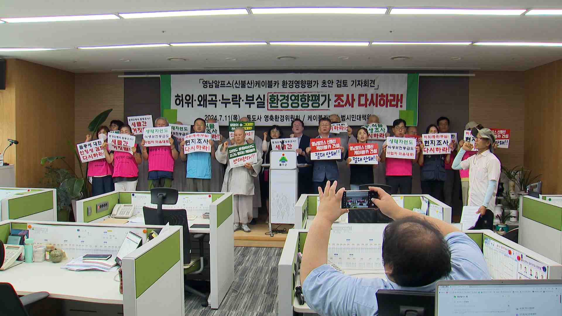 영남알프스 케이블카반대 범시민대책위원회는 기자회견을 열고 케이블카 사업자가 낙동강유역환경청에 제출한 환경영향평가 초안이 부실하다며 현지 조사를 다시 하라고 촉구했습니다. 대책위는 환경영향평가서 초안 내용을 분석한 결과 사업자가 환경단체와 함께 합동 조사를 했다는 것은 사실이 아니라고 주장했습니다. ...