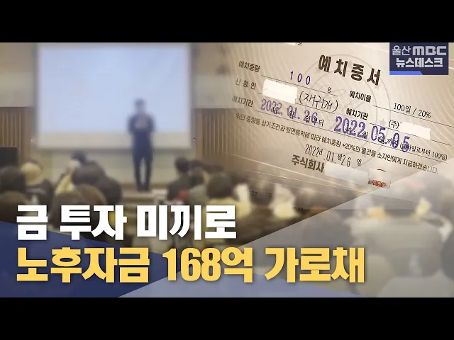 금에 투자하면 원금이 보장되고 시세차익으로 수익이 발생한다며 350여 명으로부터 168억 원을 가로챈 일당이 경찰에 붙잡혔습니다. 울산 남부경찰서는 금 투자를 미끼로 유사수신 행위 업체를 운영한 혐의로 11명을 붙잡아 40대 업체 대표를 구속했다고 밝혔습니다. 이들은 2021년 8월부터 지난해 5월까지 투자금액의 20%...