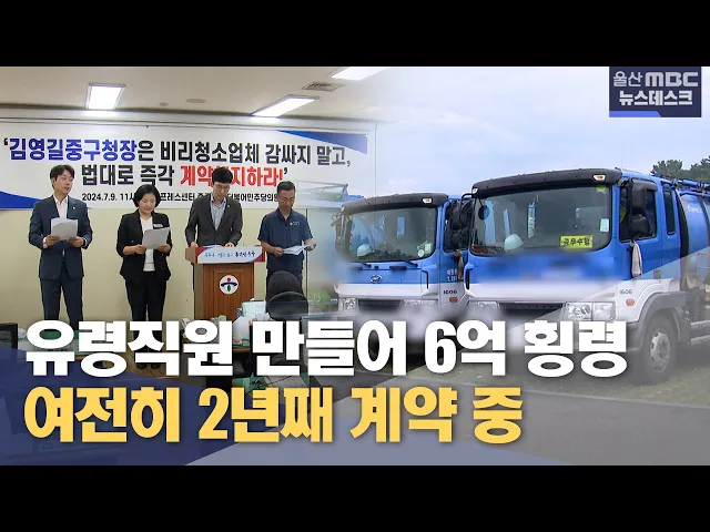 [앵커]중구지역 생활쓰레기 수거 업체들이 허위로 직원을 등록해 4년 동안 6억 원이 넘는 급여를 횡령한 것으로 밝혀졌습니다.이 사실이 알려진 게 벌써 2년 전인데 중구는 여전히 이 업체들과 계약 관계를 이어오고 있었습니다. 정인곤 기자. [리포트]중구 지역 생활쓰레기 수거를 담당하는 업체 두 곳이 입주한 울산 중구...