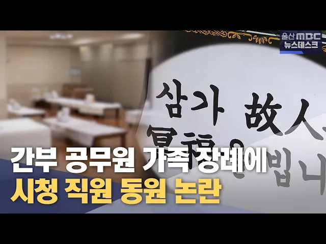 [앵커]울산의 한 간부 공무원의 가족 장례에 시청 직원들이 동원돼 논란이 일고 있습니다.울산시는 노사 단체 협약에 따라 전 직원에게 지원되는 혜택이라고 해명했지만 시대착오적 행정이라는 비판을 피하기 어려워 보입니다. 정인곤 기자 [리포트]지난 주말 울산시 소속 한 간부공무원의 가족 장례가 치뤄진 장례식장.주...