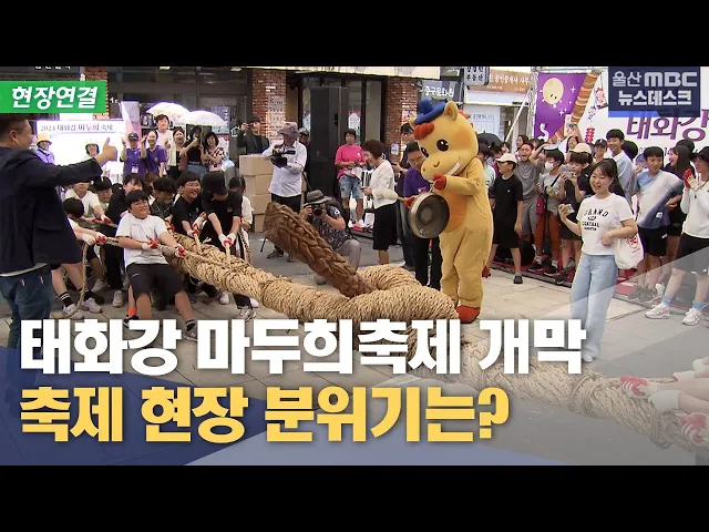 [앵커]울산 태화강 마두희 축제가 오늘부터 사흘동안 중구 원도심과 태화강 일대에서 펼쳐집니다.오늘 울산MBC 뉴스데스크는 이곳 태화강변 마두희 축제 현장에서 전해드리겠습니다. 축제 현장의 분위기는 어떤지 현장 분위기 먼저 알아보겠습니다. 정인곤 기자. [기자]네, 저는 지금 태화강 마두희 축제가 열리고 있는 중...