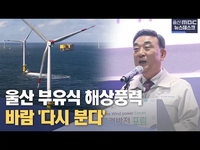 울산 부유식 해상풍력 발전과 연관 산업 육성을 위한 포럼이 오늘(6/13) 오전 울산전시컨벤션 센터에서 열렸습니다. 5개 발전 개발회사와 공급망 협의회가 참여한 가운데 열린 이번 포럼에서 김두겸 울산시장은 풍력산업을 울산의 다섯 번째 주력산업으로 육성하겠다고 밝혔습니다. 울산 부유식 해상풍력 사업은 2059년까지...