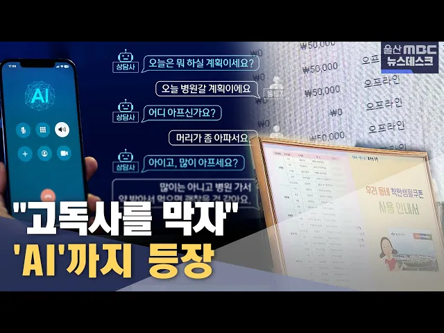 ◀ 앵 커 ▶ 늘어만 가는 고독사를 막기 위해 갖가지 방법이 도입되고 있는데요. AI가 고독사 위기 가구에 안부 전화를 하고, 사회 활동 여부도 한눈에 확인하는 신기술도 도입되고 있습니다. 정인곤 기자 ◀ 리포트 ▶ 울산 중구의 한 반찬가게. 맛깔스런 반찬들이 정갈하게 진열돼있습니다. 이곳은 최근 구청과 고독사 위험 ...