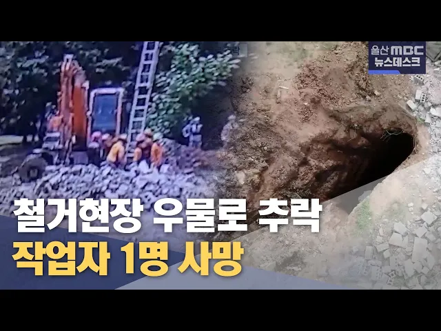 ◀ 앵 커 ▶ 남구의 한 주택 철거공사 현장에서 작업자가 숨지는 사고가 났습니다. 철거 대상이었던 오래된 주택에 우물이 있었는데, 작업자가 우물 아래로 떨어져 추락사한 것으로 추정됩니다. 유희정 기자. ◀ 리포트 ▶ 울산 남구 상개동의 한 철거 공사 현장. 굴삭기가 돌더미를 정리하던 중, 작업자들이 갑자기 현장을 바...