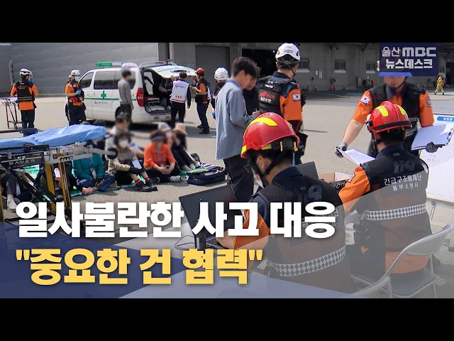 ◀ 앵 커 ▶ 산업 현장에서 피해 확대를 막기 위해서는 유관기관간 협력이 가장 중요합니다. 이를 위한 실전 훈련 현장을 취재했습니다. 이다은 기자. ◀ 리포트 ▶ 위험 화학 물질을 다루는 울산의 한 공장. 회사 자체 소방대가 먼저 화재 현장에 출동합니다. 곧바로 119 소방차들이 도착해 본격적으로 화재 진화에 나섭니다. ...