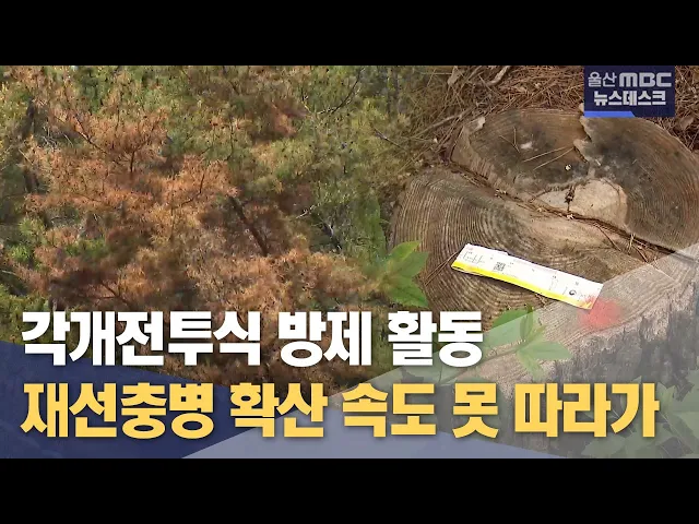 [앵커]울산에서 크게 확산되고 있는 소나무재선충병 실태를 살펴보는 연속보도, 오늘은 마지막 순서입니다.각 지자체들이 재선충병 방제를 위해 막대한 예산을 투입하고 있지만 재선충병이 잡힐 기미가 보이지 않고 있습니다. 방제 활동이 확산 속도를 따라가지 못하고 있는 이유를 취재했습니다. 이다은 기자. [리포트]울...