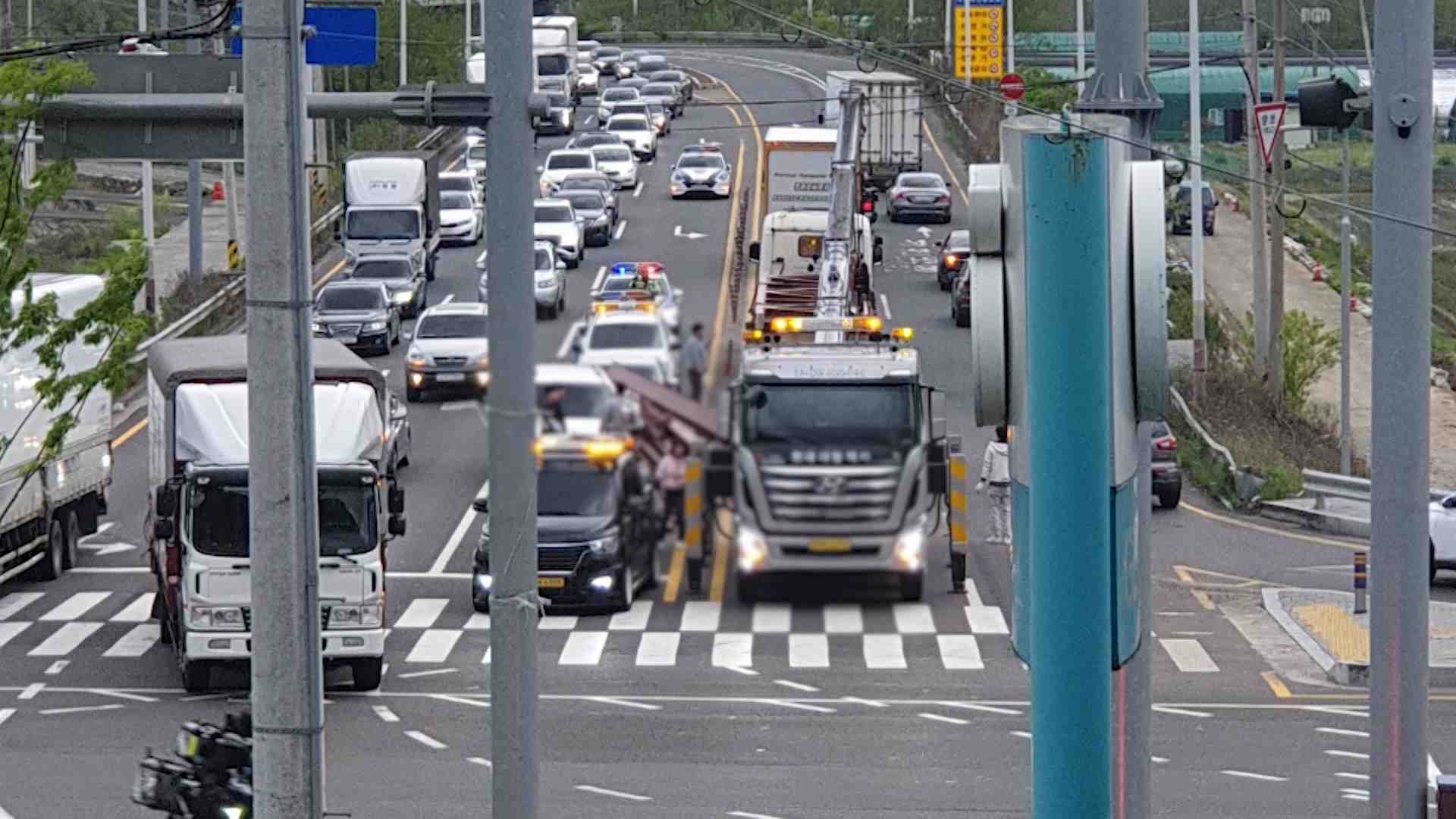 화물차 철근 적재물 이탈.. 교통 정체