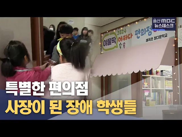 [앵커]4월 20일 장애인의 날을 앞두고 한 초등학교 특수학급 학생들이 편의점을 열었습니다.그런데 이 편의점에서는 돈으로 물건을 사는 게 아니라고 합니다. 홍상순기자가 다녀왔습니다. [리포트]울산의 한 초등학교 6학년 교실.학생들이 입과 발로 그림을 그리고 있습니다. 친구 얼굴을 그리거나 캐릭터를 그렸다는데 무...
