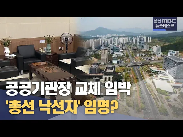 [앵커]울산에 본사를 둔 공공기관 5곳의 기관장 임기가 조만간 종료될 예정입니다.공교롭게도 기관장 교체 시기와 국회의원 선거가 맞물리면서 정치권의 낙하산 보은인사를 자제해야한다는 목소리가 나오고 있습니다. 최지호 기자. [리포트]울산에 자리 잡은 공기업과 준정부기관, 기타 공공기관은 모두 9곳입니다.이 가운...