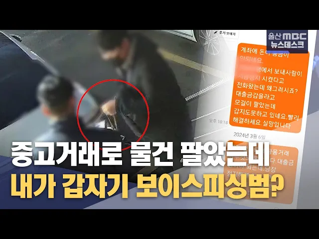 [앵커]보이스피싱 조직이 중고 거래에까지 침투하고 있습니다.중고거래를 하고 본인의 계좌로 돈을 받았다가 자신도 모르는 사이에 보이스피싱 사기에 연루되는 피해가 잇따르고 있습니다. 이다은 기자가 단독 취재했습니다. [리포트]울산 북구의 한 식당 앞.40대 남성이 목에 차고 있던 금목걸이를 풀기 시작합니다. 중고...