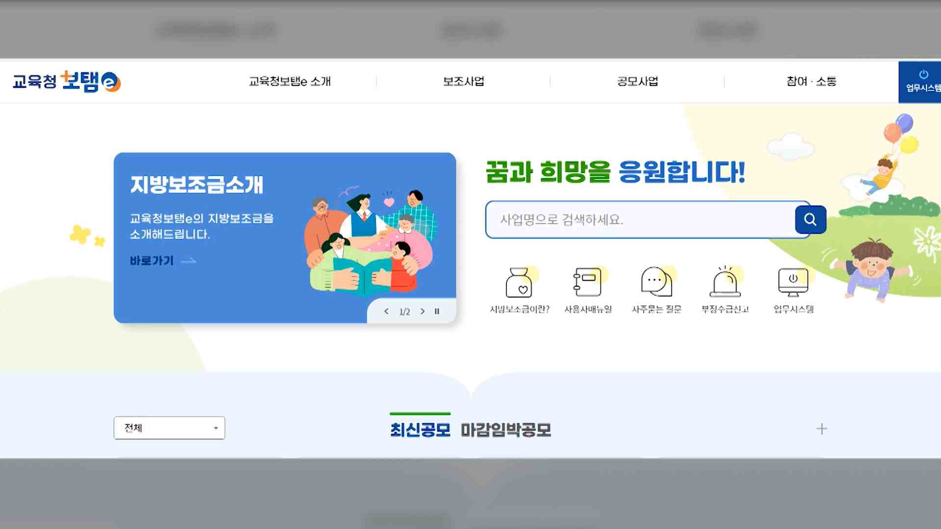 울산시교육청이 보조금 관리의 투명성을 제고하기 위해 올해부터 '교육청보탬e' 시스템을 운영합니다. 보조금 사업의 경우 공모 과정부터 보조금 신청, 집행 내역까지 모두 이 시스템을 통해 진행됩니다. 지금까지는 민간보조사업자에게 지방보조금을 우선 지급하고 사업 완료 후에 집행내역과 증빙서류를 수기로 제출받아 ...