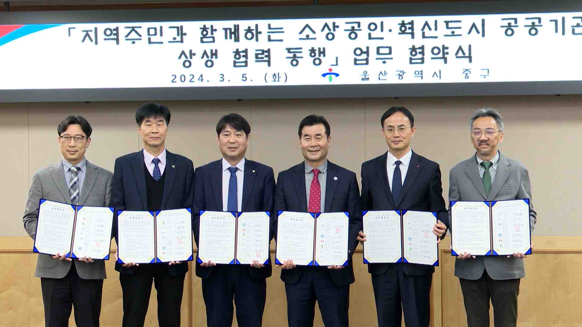 중구와 혁신도시 공공기관 및 단체 6곳 등이 지역 소상공인 지원을 위한 상행 협력 동행 행사 지원을 위한 업무협약을 맺었습니다.이번 협약으로 중구는 올해 혁신도시에 자리한 공공기관 5곳에서 각각 한 차례씩 지역 주민과 함께하는 소상공인 협력행사를 진행할 예정입니다.앞으로 열릴 행사에서는 지역 소상공인 20개 ...