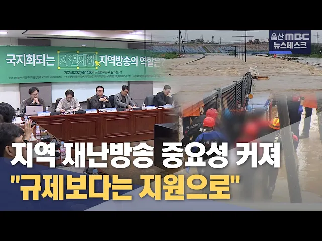 [앵커]재난이 일상화되고 불확실성도 커짐에 따라 재난방송의 중요성이 커지고 있습니다. 국회에서 국지화 되는 자연재해와 이에 대응하는 지역방송의 역할을 모색하는 토론회가 열렸습니다.송정근 기자입니다. [리포트]지난해 7월 발생한 청주 오송 지하차도 침수 사고. 호우 속 제방 둑이 무너지면서 불과 2분만에 지하차...