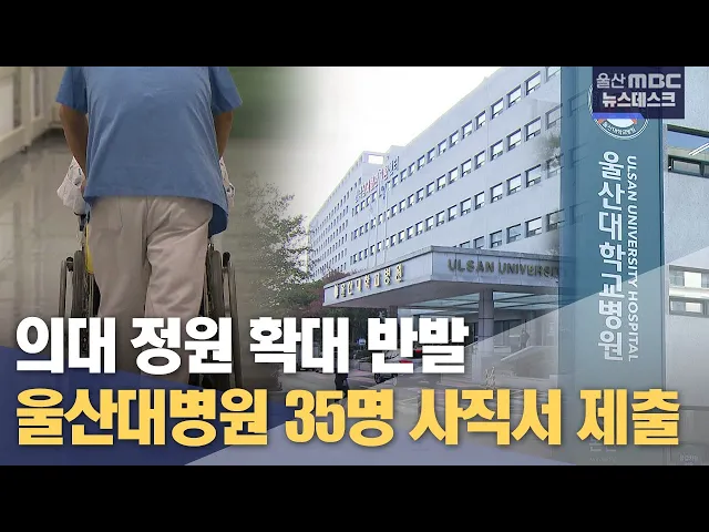 [앵커]의대 정원 확대에 반발해 전공의들이 내일(2/20)부터 집단행동을 예고한 가운데 울산대병원에서도 전체 전공의의 27%인 35명이 사직서를 낸 것으로 확인됐습니다.울산시는 진료 차질 가능성에 대비해 지역응급의료센터 4곳에 협력진료를 요청했습니다. 이용주 기자. [리포트]울산의 유일한 수련병원인 울산대병원에서...