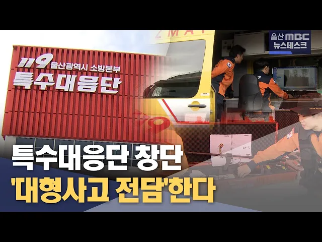 ◀ 앵 커 ▶ 대형 사고와 자연 재해를 전담하는 특수 소방대가 창단했습니다. 유해물질을 취급하는 공장에 원전까지 밀집한 울산에 드디어 맞춤형 대응기관이 생긴 건데요. 인력이 늘고 첨단 장비가 확보된 만큼 크고작은 피해를 최소화할 수 있을 것으로 기대됩니다. 최지호 기자. ◀ 리포트 ▶ 지난 2019년 북구 염포동에서 ...