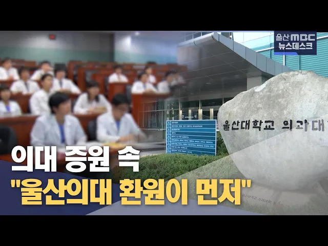 ◀ 앵 커 ▶ 정부가 2025학년도 입시부터 의대 정원을 2천명 늘리기로 하면서 의사 수가 적은 울산지역에 기대감이 높아지고 있는데요. 의사들의 지역 배치 정책과 울산의대 울산 환원 없이는 제대로 된 효과를 볼 수 없을 거란 지적이 제기되고 있습니다. 이용주 기자. ◀ 리포트 ▶ 지난 6일, 정부는 의대 정원을 3천58명에서...