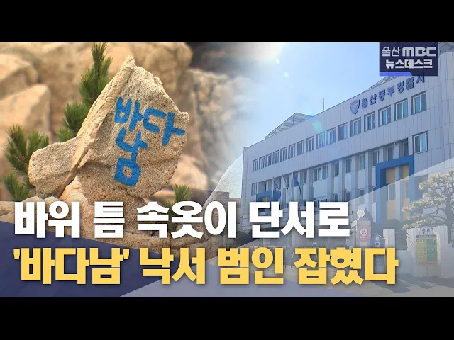 [앵커]기암괴석으로 유명한 울산의 관광 명소에 누군가 낙서를 하고 달아나 경찰이 조사에 나섰다는 단독보도를 전해드린 적이 있습니다.범행 현장을 비추는 CCTV가 없어 미궁에 빠질 뻔한 사건이었지만, 범인이 현장에 남긴 물건들이 단서가 됐습니다. 이다은 기자. [리포트]푸른 바다와 기암괴석이 절경을 이룬 울산 대왕...