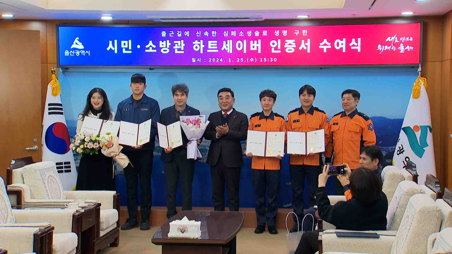 울산소방본부는 길에 쓰러진 심정지 환자를 심폐소생술로 구조하고 사라진 시민 3명에게 하트세이버 인증서를 전달했습니다. 이들은 지난해 9월 골목에 쓰러진 60대 남성을 발견하고 골든타임 안에 신속하게 심폐소생술을 실시했습니다. 당시 구급 대원이 현장에 도착하자 현장을 떠나며 심폐소생술을 실시한 시민들의 신분...
