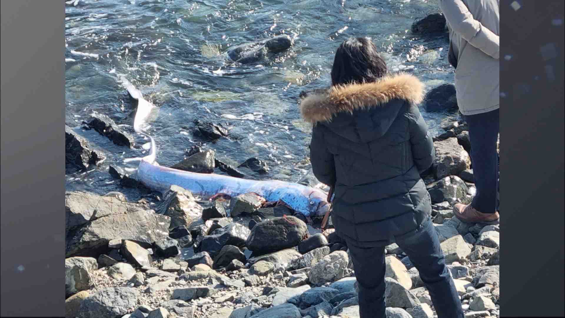 오늘(1/15) 오전 10시쯤 울산 울주군 간절곶 해안가에서 2m가 넘는 대형 산갈치가 발견됐습니다. 산갈치는 수심 200m 이상인 심해에 주로 사는 어류여서 이번처럼 연안가에서 발견되는 드문 일입니다. 울산에서는 지난 2015년과 2018년 울주군과 북구 해안가에서 각각 발견됐었습니다. 영상제보 김종수