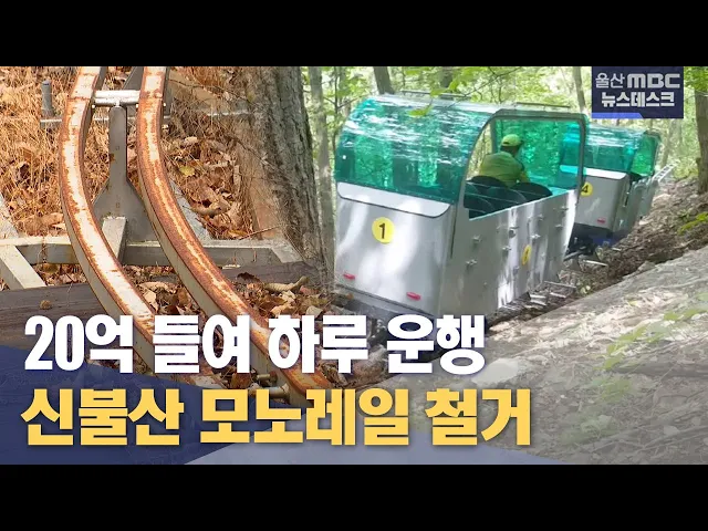 ◀ 앵 커 ▶ 5년 넘게 흉물로 남아있던 울산의 국립자연휴양림 모노레일이 결국 철거 수순을 밟게 됐습니다. 20억 원을 들여 설치한 모노레일은 개통 첫날 딱 하루 밖에 운행하지 못했는데 철거에도 수억원이 들 전망입니다. 정인곤 기자 ◀ 리포트 ▶ 지난 2018년 울산 신불산 모노레일 개통 첫날. 모노레일이 전기 배선에 문...