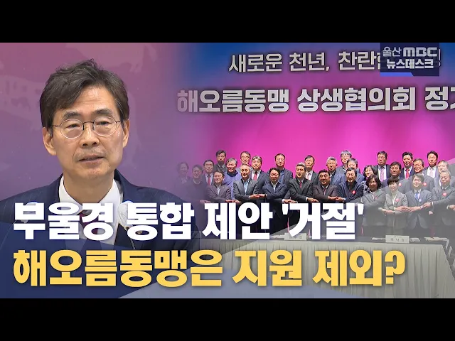 ◀ 앵 커 ▶지자체 통합을 추진중인 국민의힘 뉴시티 특별위원회가 김두겸 울산시장을 만나 부울경 통합을 다시 제안했습니다.김 시장은 이 제안을 거절하고, 대신 자신이 추진하는 해오름동맹을 도와달라고 요청했지만 확답을 듣지 못했습니다. 유희정 기자. ◀ 리포트 ▶경기도 김포의 서울 편입을 주도하고 있는 국민의힘 뉴...
