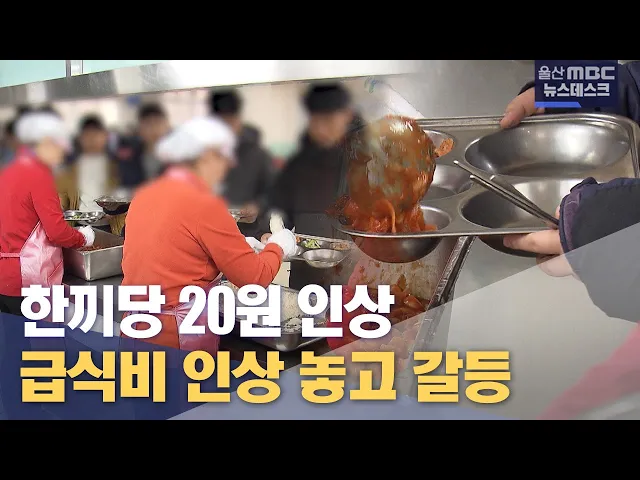 [앵커]울산시의회가 내년도 예산을 심의하면서 학생들의 급식비 인상액 100원을 전액 삭감했습니다.울산시교육청은 물가 상승으로 인해 급식비 인상이 불가피하다는 입장인 반면, 울산시는 한끼당 20원을 분담할 여력이 없다며 반대하고 있습니다. 홍상순 기잡니다. [리포트학생 무상 급식비는 초등학생 3천6백 원,중학생 4...