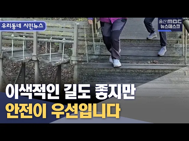 [앵커]울산MBC와 울산시청자미디어센터가 함께 만드는 우리동네 시민뉴스입니다.울산 곳곳에는 특색을 갖춘 이색적인 공원들이 많은데요. 하지만 이런 특색들이 오히려 공원을 이용하는 시민들에게 불편으로 다가올 수 있다고 합니다. 김삼숙기자입니다. [리포트]이곳은 울산 북구의 홈골 수변공원입니다.저수지를 중심으로...