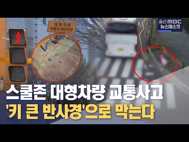[앵커]화물차나 덤프트럭 같은 대형차량이 아이들을 발견하지 못해 발생하는 교통사고 소식 종종 전해드렸는데요.이런 안타까운 사고를 막기 위한 대형차량 전용 반사경이 북구 매곡초등학교에 전국 최초로 시범 설치됐습니다.이다은 기자가 현장을 가봤습니다.[리포트]지난해 울산의 한 초등학교 앞 횡단보도. 어린이 2명...