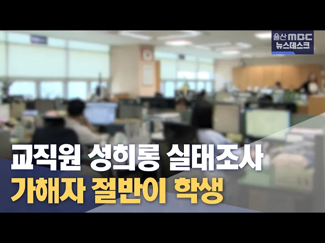 [앵커]교직원에 대한 성희롱 가해자 절반이 학생인 것으로 조사됐습니다. 피해자 가운데 60%는 그냥 넘어갔다고 답했는데요. 3년 전 동일한 조사 결과와 비교하면 성희롱 가해자와 장소 등 주요 유형이 완전히 바꼈습니다. 홍상순 기잡니다.[리포트]울산시교육청이 울산복지가족진흥사회서비스원에 맡겨 지난 6월과 7월, 교...