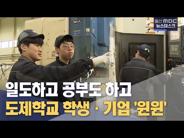 [앵커]특성화고 학생들이 학교와 기업을 오가며 배우는 도제학교가 도입된지 8년이 지났습니다.중소기업은 인력 채용이 쉬워졌고 학생들은 일하며 대학까지 졸업할 수 있어 모두 만족도가 높습니다.홍상순 기자가 보도합니다.[리포트]울산공고를 졸업하고 취업 3년차인 강성규씨.그 사이 전문대학을 졸업했고 산업기능요원...