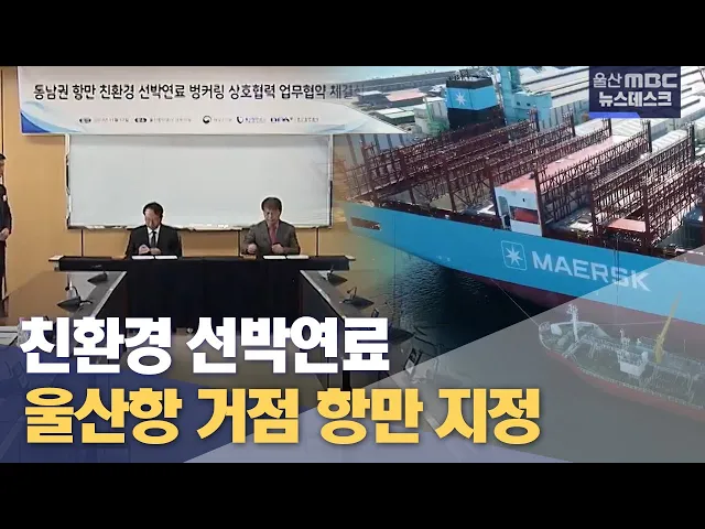 [앵커]정부가 선박연료의 탄소배출을 줄이기 위해 국내 최대 액체물류항인 울산항을 친환경 연료 공급 거점 항만으로 지정했습니다.울산항은 이에따라 부산항 등 전국 항만에 친환경 선박연료를 공급하는 에너지 허브로 육성됩니다.이다은 기자입니다.[리포트]현대중공업이 건조해 내년에 덴마크 선사에 인도할 초대형 컨테...