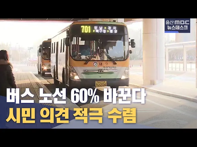 [앵커]울산시가 내년 하반기 시행을 목표로 울산 시내버스 노선의 60%를 개편하기로 했습니다.울산시는 시민 생활에 큰 변화가 예상되는 만큼 이번주부터 구군별 주민설명회를 열고 시민 의견 수렴 절차에 들어갑니다. 이용주 기자.[리포트]내년 6월 준공을 목표로 공사 중인 울산 북구 명촌 차고지 현장입니다.현재 공정률...