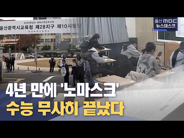 ◀ 앵 커 ▶울산도 오늘(11/16) 27개 시험장에서 대학수학능력시험이 무사히 치러졌습니다.올해는 N수생 비중이 늘어난데다 시험 결시율이 예년보다 낮아 정시에 어떤 영향을 미칠지 주목됩니다. 홍상순 기잡니다. ◀ 리포트 ▶시험장 앞이 모처럼 떠들썩합니다.천장수 교육감과 중구의회 의원들, 그리고 인근 교회 신도들까지 ...