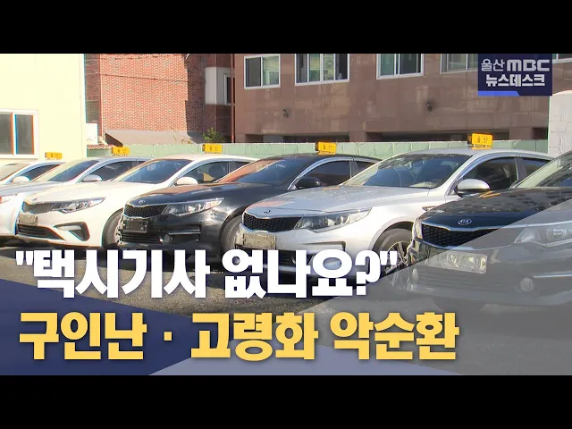 [앵커]울산지역 법인택시 업계가 운전기사를 구하지 못해 전체 면허차량의 10%는 운행을 하지 못하고 있습니다.젊은층이 택시기사 입사를 외면하면서 택시운전사들의 구인난과 고령화가 반복되고 있습니다.이용주 기자.[리포트]울산의 한 법인택시 업체 차고지.주차돼 있는 차들의 번호판이 떼어져 있습니다.회사가 영업용 ...