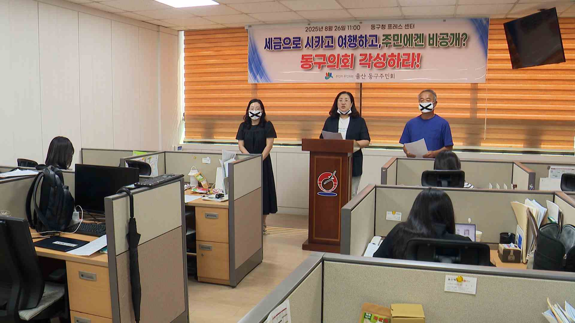 동구 지역 주민들이 동구의회가 외유성 해외 연수를 진행하고 결과 보고회에 주민 참여도 막았다며 공개 사과와 재발 방지를 요구했습니다. 동구주민회는 수천만 원의 예산을 들여 외유성 미국 연수를 다녀온 의회가 보고회에 참여하려는 주민들이 일반인이라는 이유로 퇴장시켰다며 알 권리를 침해했다고 주장했습니다. 또...