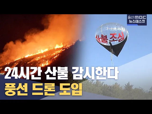 [앵커]겨울 산불 감시를 위해 카메라가 달린 풍선 드론이 전국 처음으로 울산에 도입됐습니다. 최대 주변 반경 10㎞를 24시간 모니터링 할 수 있는 특징을 갖고 있습니다. 이용주 기자 입니다.[리포트]울산 울주군 언양읍 민가 인근 산등성이가 새빨간 불길과 연기로 휩싸였습니다.진화대원들은 손전등에 의지해 산길을 오...