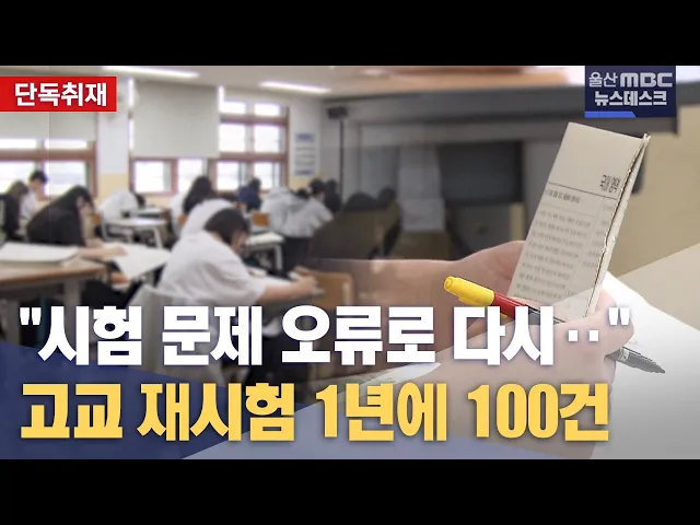 [앵커]울산지역 고등학교에서 시험 문제 오류로 인해 재시험을 치는 경우가 한해 100건이나 되는 것으로 나타났습니다. 내신과 직결되기 때문에 시험 문제를 잘못 낸 교사에게 처벌도 내려지지만 출제 오류는 줄어들지 않고 있습니다. 홍상순 기자가 단독 보도합니다.[리포트]울산의 한 고등학교.3학년 1학기 기말고사 국어...