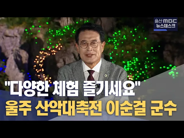 [앵커]뉴스데스크 야외 무대에 이순걸 울주군수가 나와계십니다. 이야기 나눠보겠습니다. 군수님, 안녕하십니까?[리포트]Q. 울주 산악대축전의 주요 행사인 산악영화제가 이틀 뒤인 29일 막을 내립니다. 이번 영화제에 대한 관객들의 반응은 어땠습니까?이번 울산울주세계산악영화제에서는 자연과 어우러지는 자연친화적 ...