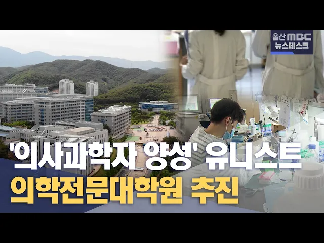 [앵커]정부의 의대 정원 확대 방침에 힘입어 유니스트가 의학전문대학원 설립을 추진하겠다고 밝혔습니다.의사과학자 양성을 목표로 이미 울산대 의대와 협업 체계를 갖추고 있는데, 전국적으로 의대 설치 바람이 거세게 불고 있어 치열한 경쟁을 뚫을 수 있을지가 관건입니다.홍상순 기잡니다.[리포트]공대생과 의대생이 ...