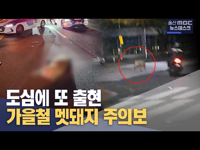 [앵커]울산 도심 한가운데서 멧돼지가 1시간 반 넘게 배회하며 주민들을 위협하는 사고가 벌어졌습니다.가을철이 되면서 산에 살던 멧돼지가 먹이를 찾아 도심까지 내려오는 일이 빈번해질 것으로 우려됩니다. 유희정 기자.[리포트]차도 한가운데로 멧돼지 한 마리가 뛰어나옵니다.교차로와 횡단보도를 마구 가로질러 달리...