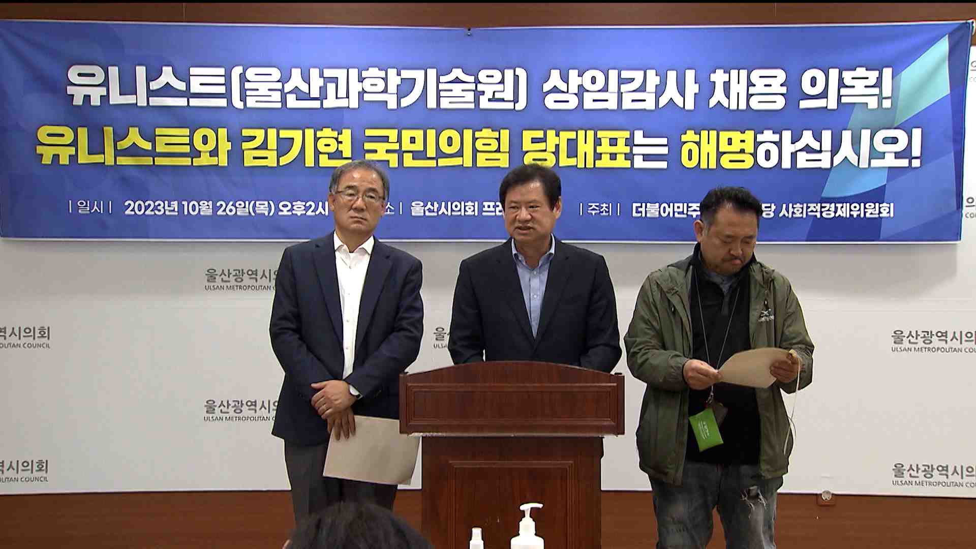 더불어민주당 울산시당은 오늘(10/26) 울산시의회에서 기자회견을 갖고 유니스트 상임감사의 낙하산 임명 의혹에 대해 해명할 것을 촉구했습니다.민주당은 체육학 전공에 감사 업무에 대한 전문적 지식이 없는 이모씨가 지난달 감사에 선임된 것은, 김기현 대표 측근에 대한 보은성 인사로 보인다고 주장했습니다.이에 대해...
