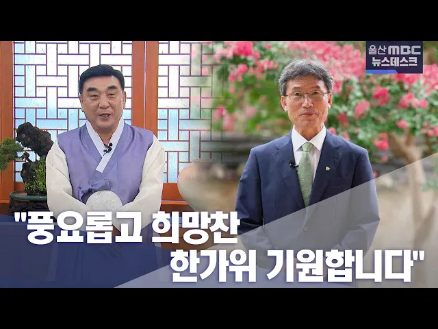 [앵커]민족 대명절 추석을 맞아 김두겸 울산시장과 천창수 울산시교육감이 울산시민들에게 명절 인사를 전했습니다.[리포트][김두겸 / 울산시장]"존경하는 울산시민 여러분 즐거운 추석입니다. 올해는 임시 공휴일 덕분에 연휴가 6일로 늘어나서 명절이 더 즐겁고 행복할 것 같습니다. 그리고 이번 추석에는 수퍼문이 뜬다...